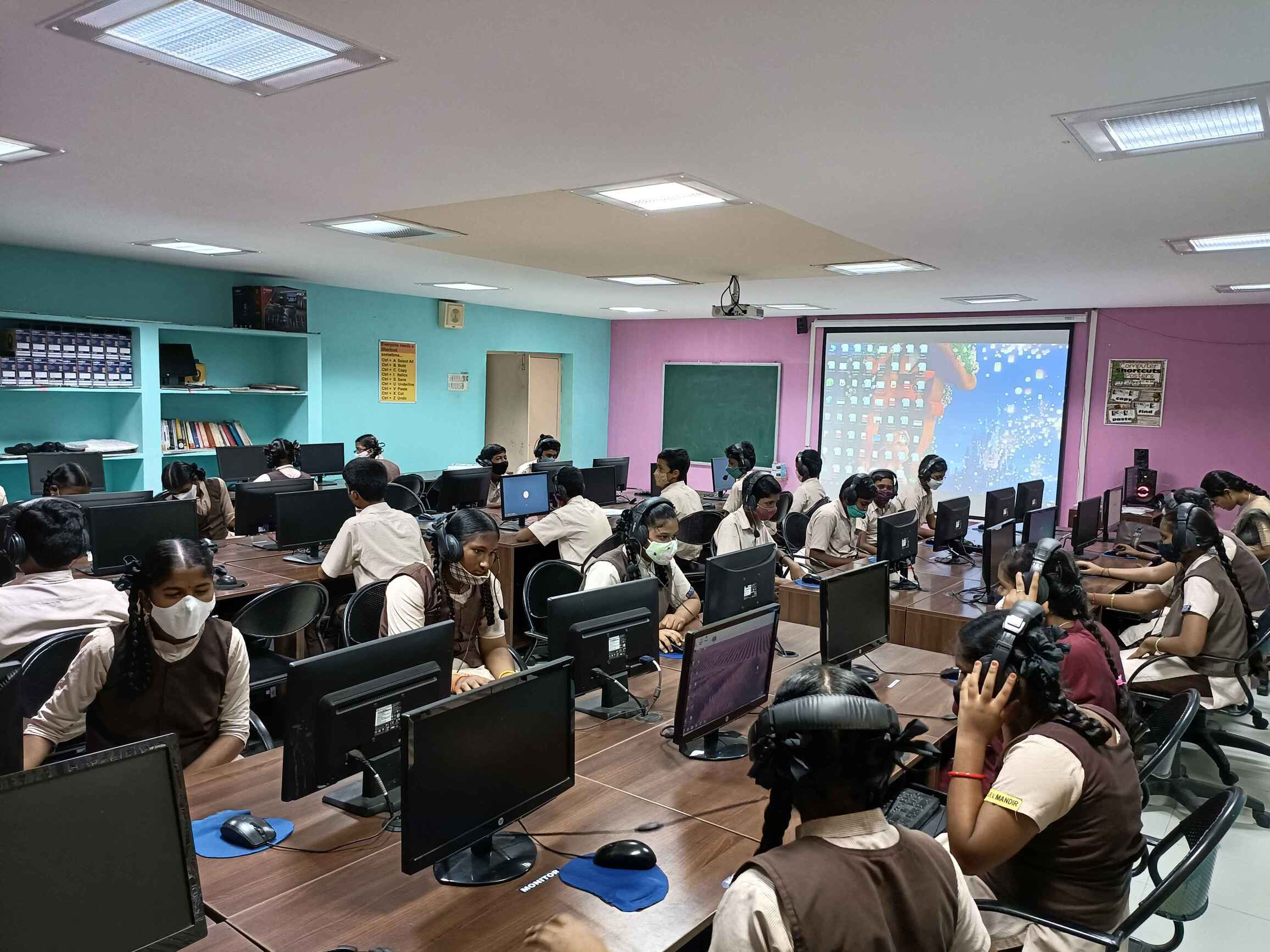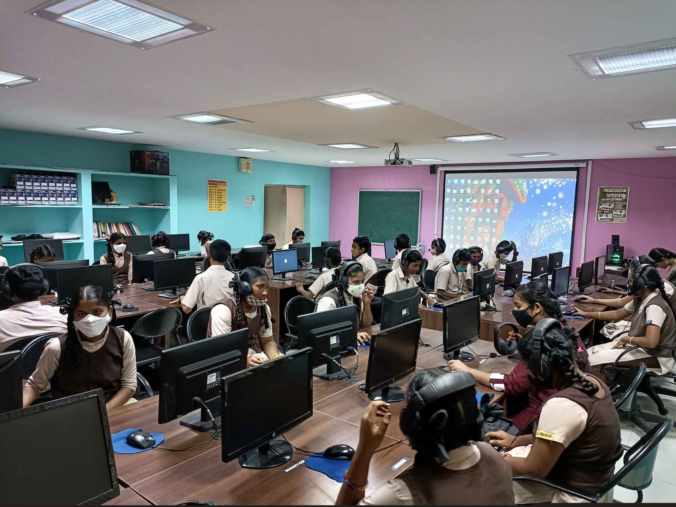 Being aware of the students’ future, SSRVM emphasizes on the spoken English. For this our Language lab is well equipped with modern Audio and Visual Systems. The students are moulded with foreign accent from the primary level. The articulations of the students are assessed periodically level by level.
